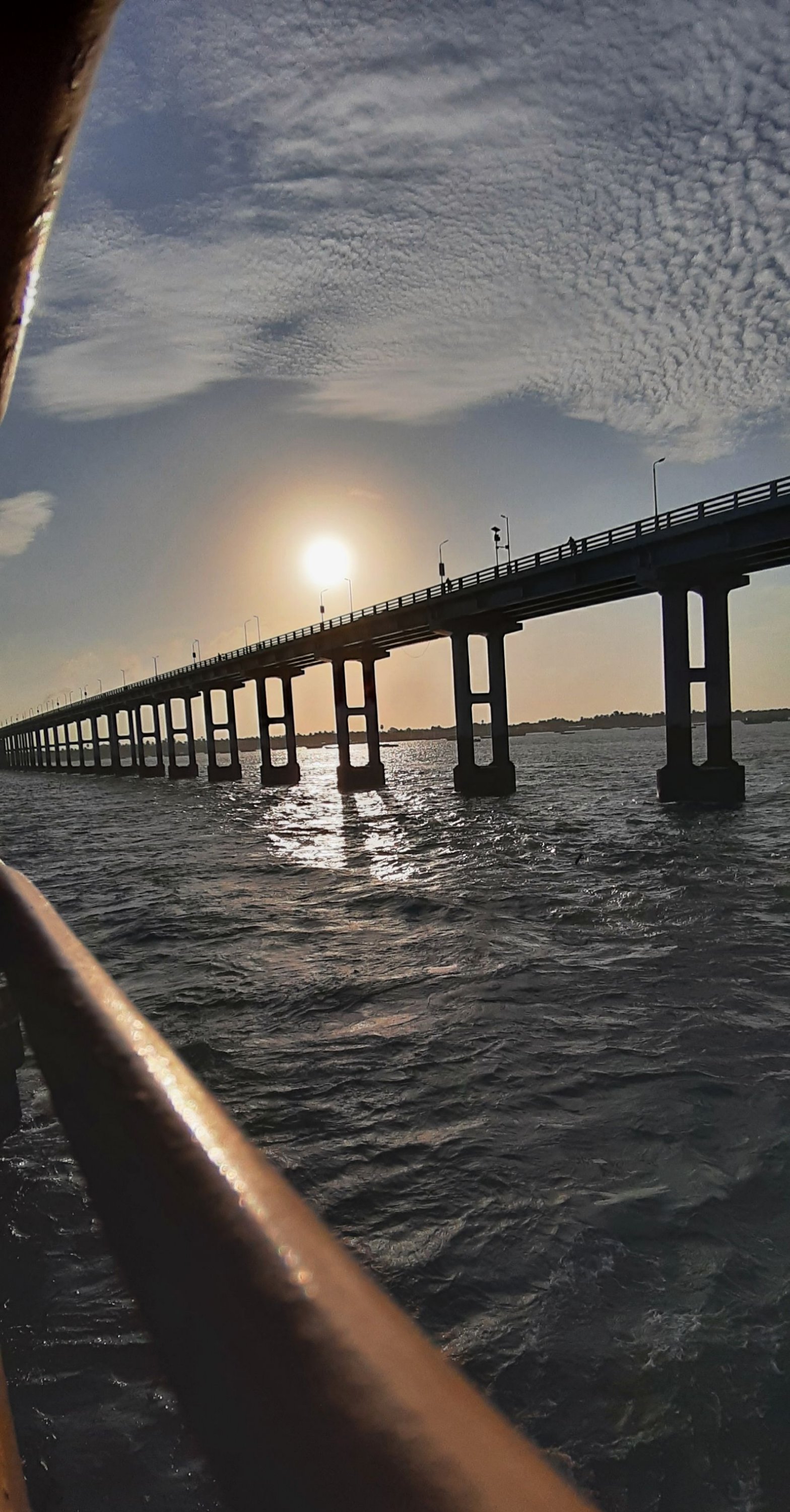 As pace of the train slowed down and I heard some people mumbling “Samundar dekho”, I opened my eyes and realized it was almost dawn. I made my way from the upper-berth of the train to the lower-berth and woke up my parents too. From the train window, we could see the mighty sea infront of us, with huge waves hitting the base of the bridge.