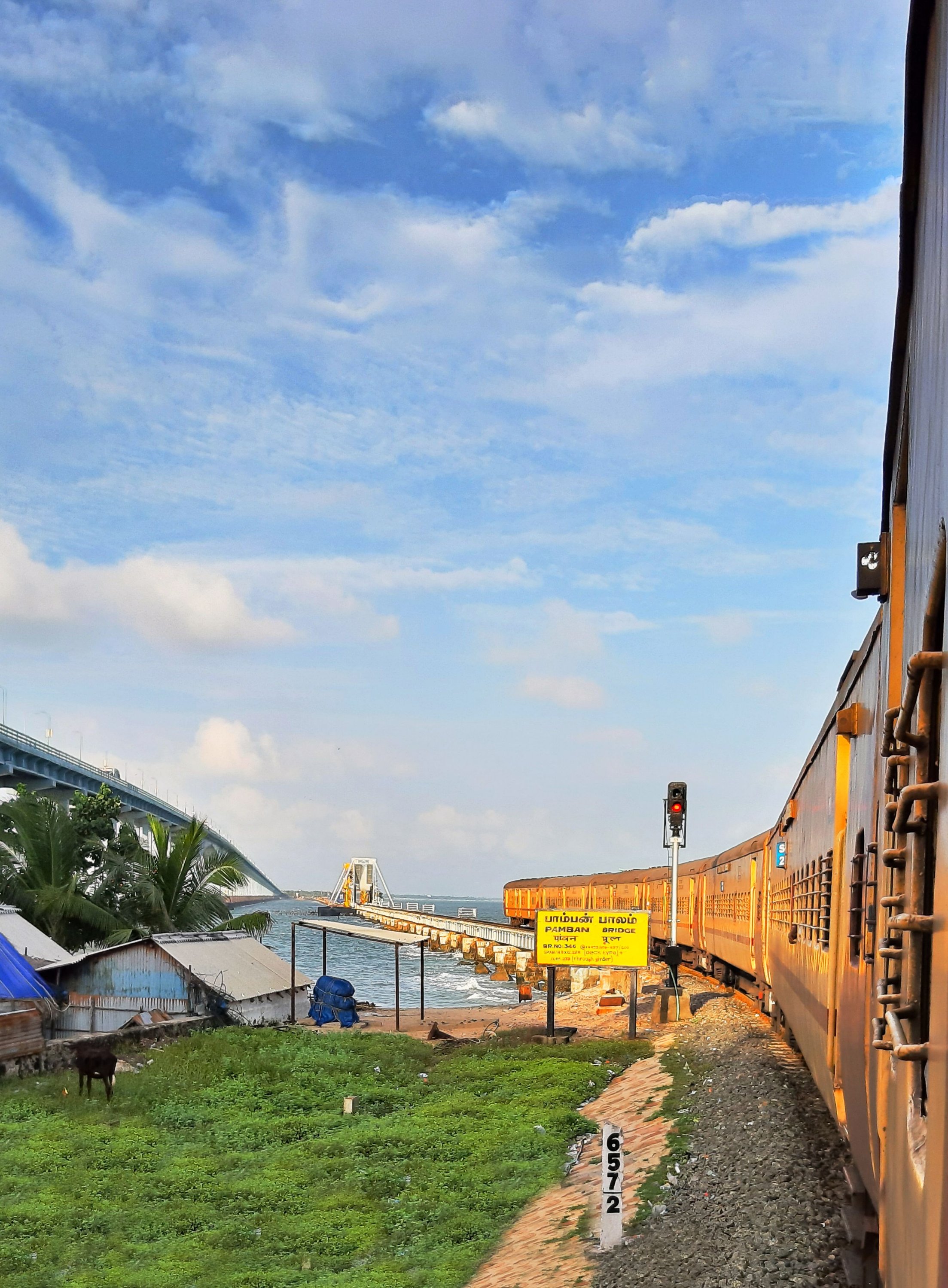 As the train moved slowly on the Pamban Bridge, the first ever sea bridge of India, I couldn’t help but admire the beauty of the place. The view was mesmerizing and it was such a beautiful start to the day.